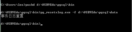 运行>pg_resetxlog.exe修复日志文件,如下图: