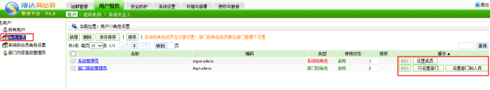 ——用户与组织——角色设置——设置系统级角色或部门级角色。