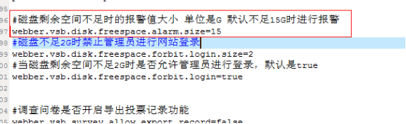 VSB默认配置为: VSB所在分区可用空间少于15G时,提示不足.