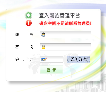 登录站群时报”磁盘空间不足”,如下图: