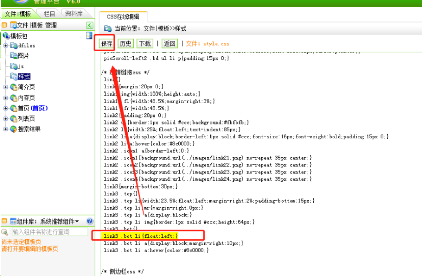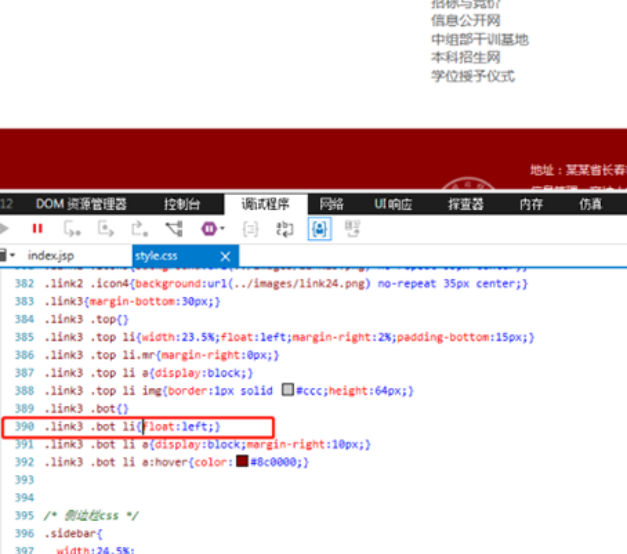 第四步:打开style样式表,找到.link3 .bot li{float:left;}这行代码;
