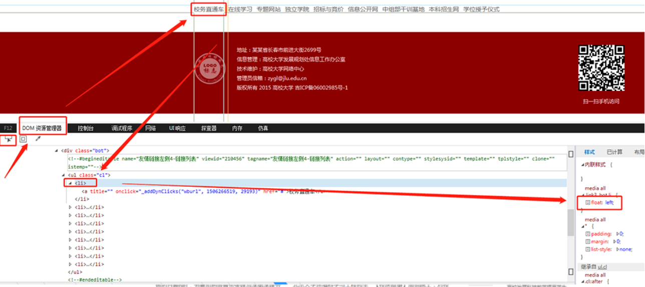 第三步:删掉float:left,就能看见链接由原先的一行显示变成多行显示,点击此处style;