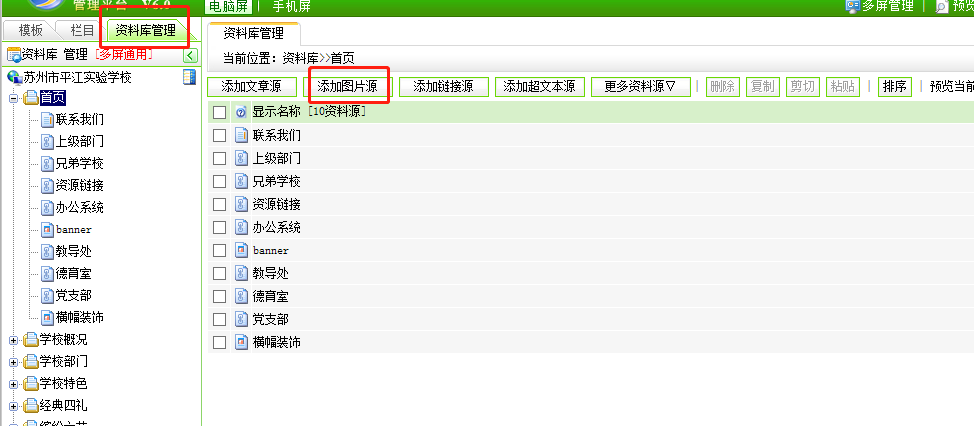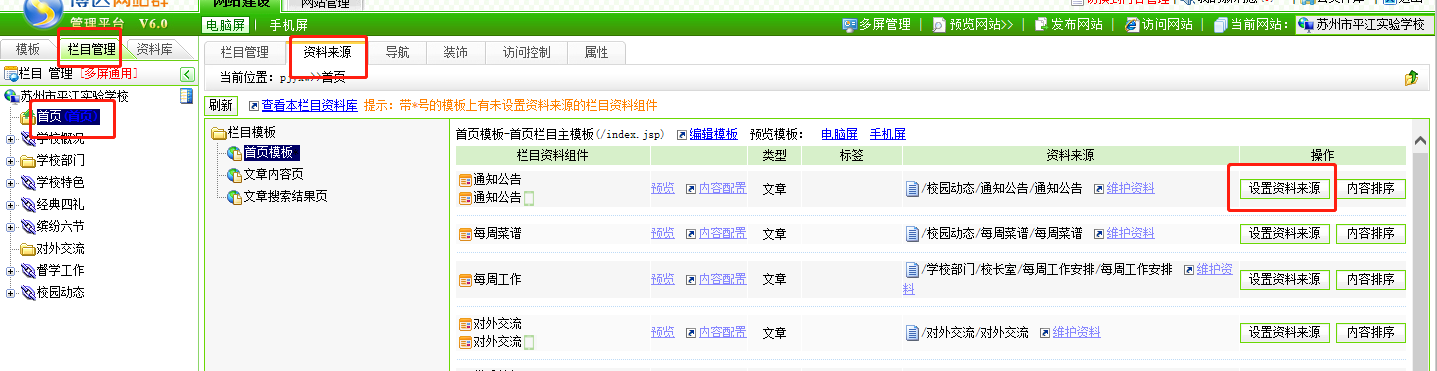 步骤三:在栏目管理中---首页---资料来源---设置对应的资料来源即可
