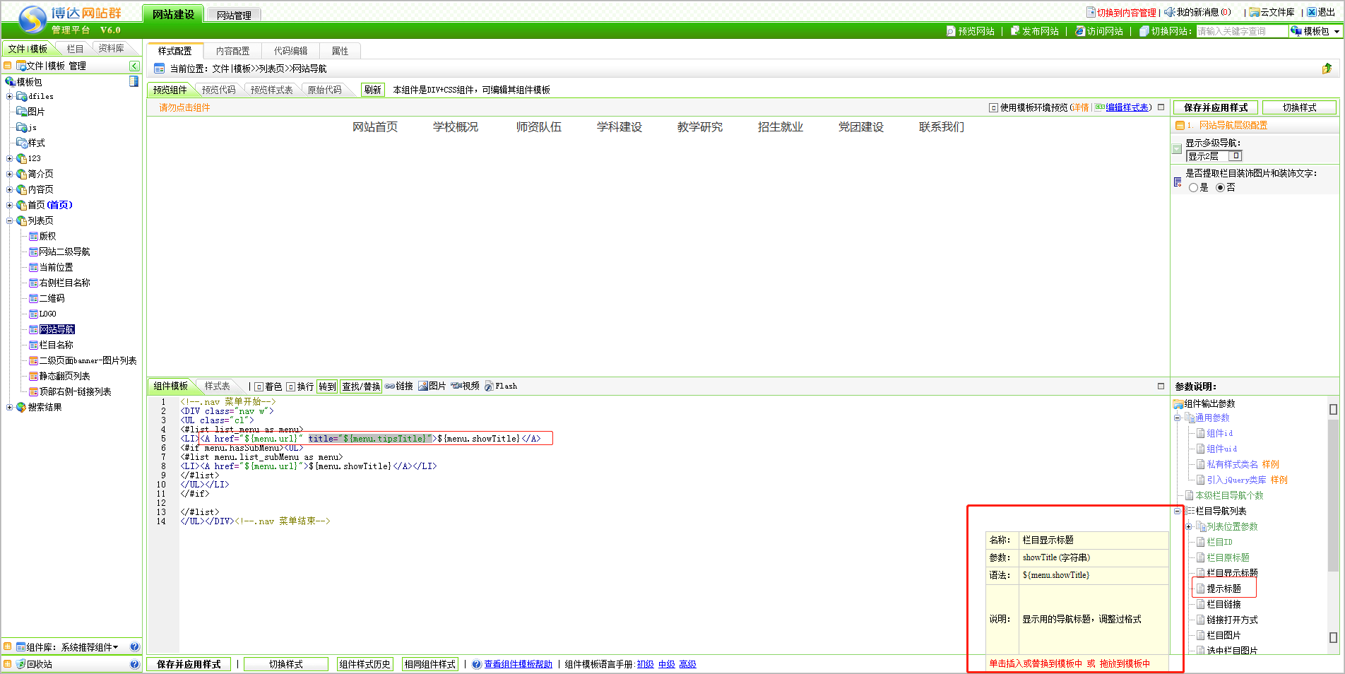 第二步:在a标签里面添加title="${menu.tipsTitle}" (${menu.tipsTitle}是组件提示标题的参数) ,点击保存;