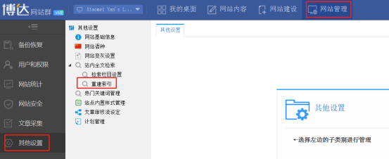 —选择网站管理—其他设置—重建索引即可:如图所示: