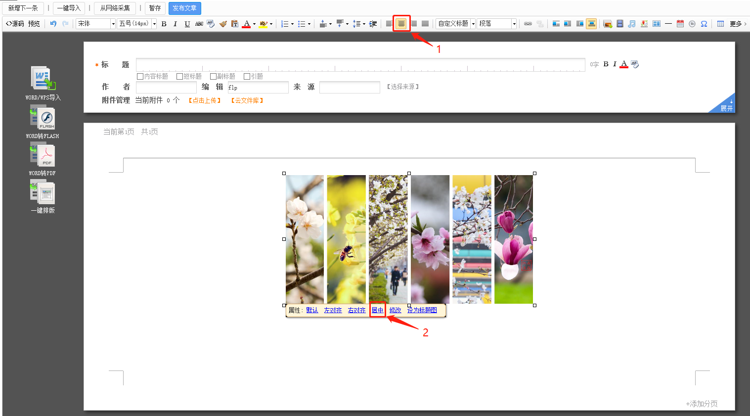 如何调整内容中的图片居中呢?