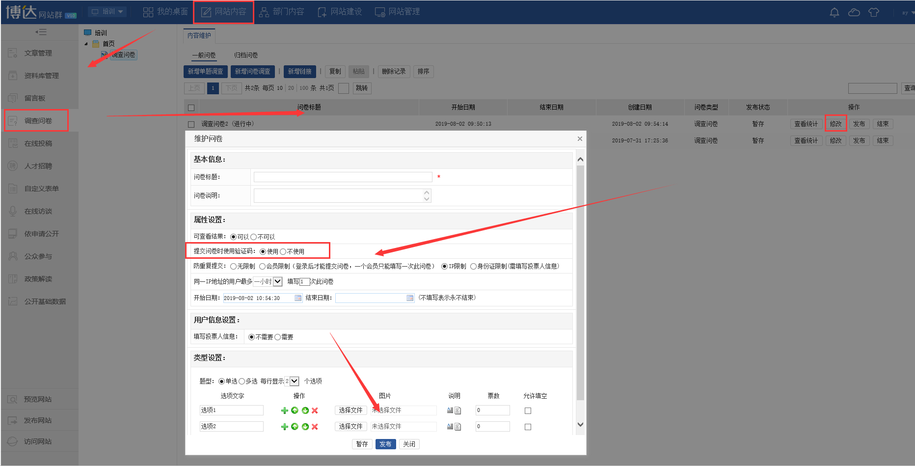 1.登陆网站管理,网站内容-调查问卷,选择对应的问卷
