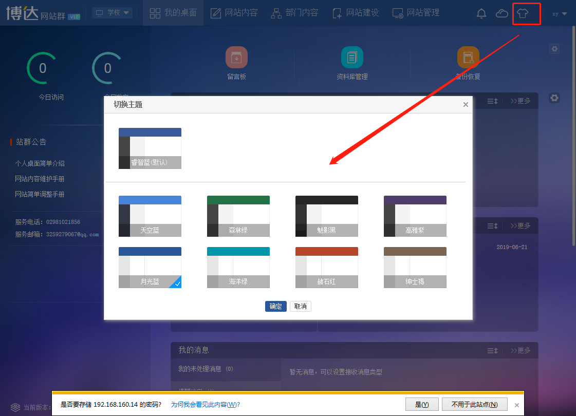 登录网站管理后台,点击右上角衣服的图标按钮,进行切换皮肤。