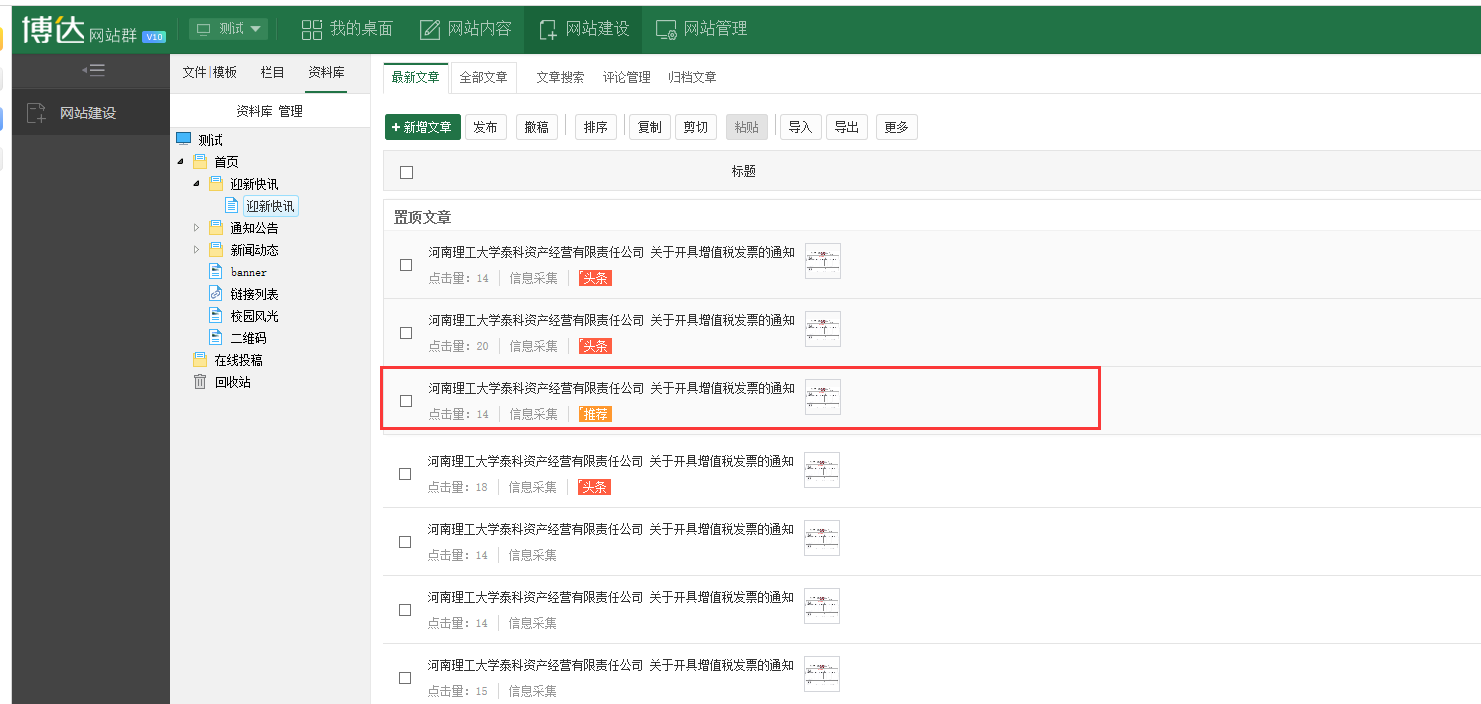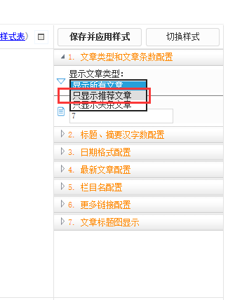 设置好推荐文章后,在标题列表右侧设置为只显示推荐文章。