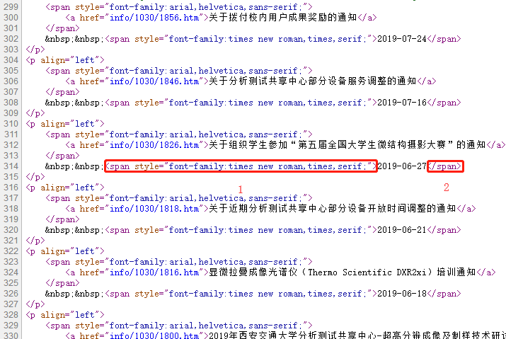 例:如图所示采集文章日期,日期开始标签选择为1,结束标签为2,设置好之后进行预览,若能预览出来日期则可以进行采集,如果预览没有内容,需要确认下标签是否唯一