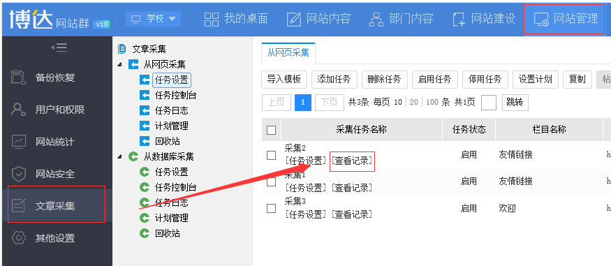 1.登陆网站管理,网站管理-文章采集,从网页采集(任务设置),点击对应任务查看记录,然后清空采集记录,再次进行采集即可