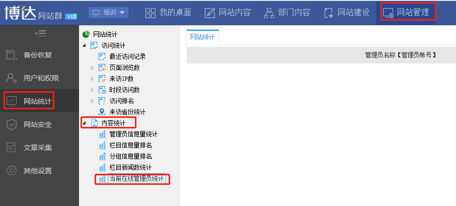 —网站统计—内容统计—选择当前在线管理员统计即可,如图所示: