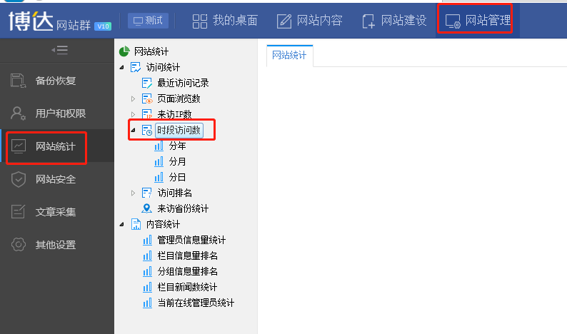 —网站统计—访问统计—选择时段访问数即可,如图所示: