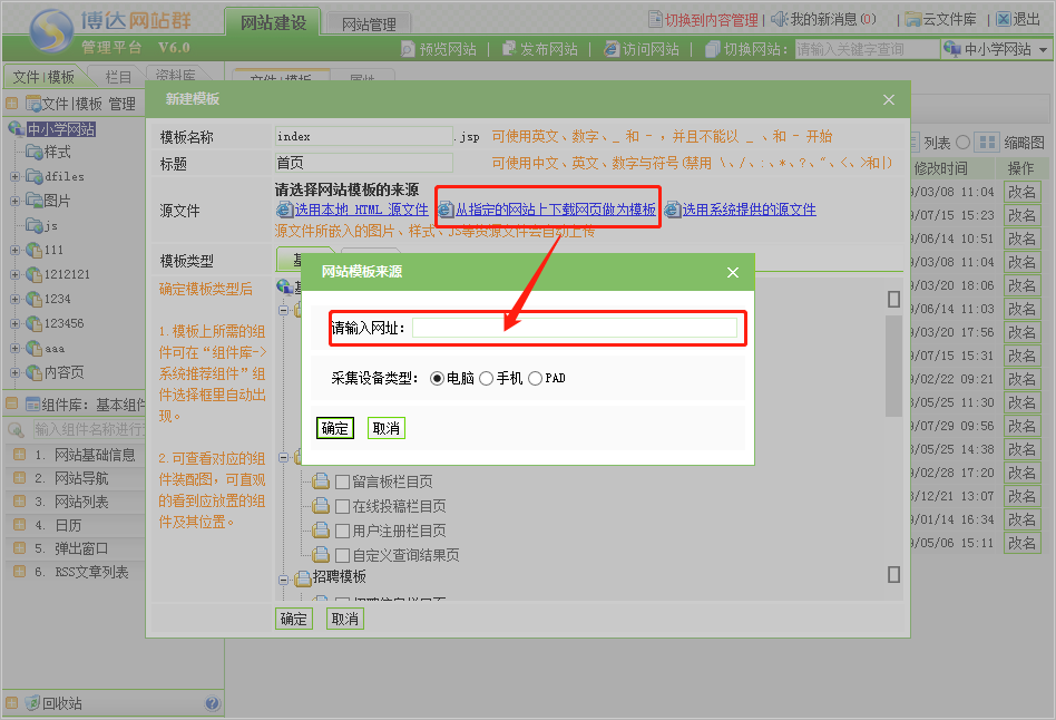 第三步:选择点击从制定的网站上下载网页作为模板,输入直接点击确定即可。