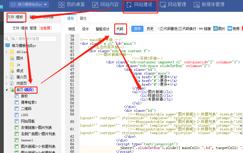 第一步:登录后台网站建设——文件模板,点击首页模板代码,找到需要添加图标的标题;