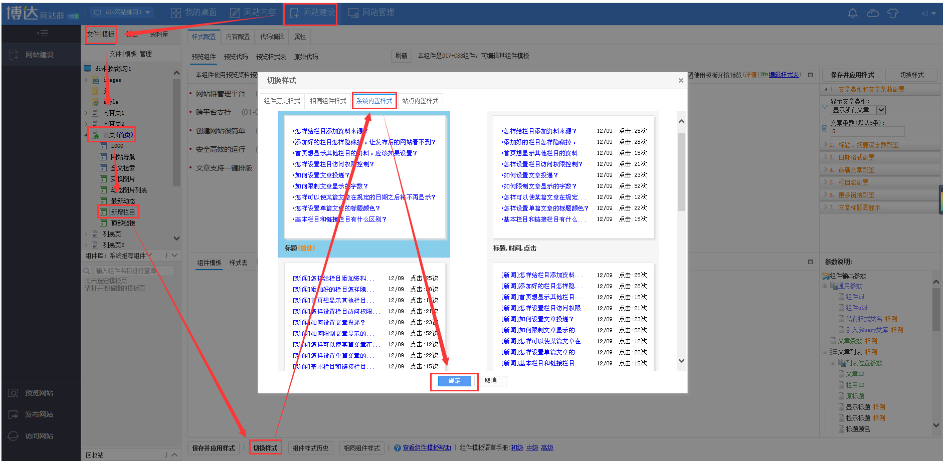 1.登录网站建设-文件|模板-找到组件对应的模板名称-点击组件-切换样式-选择系统内置样式,确认并保存即可。