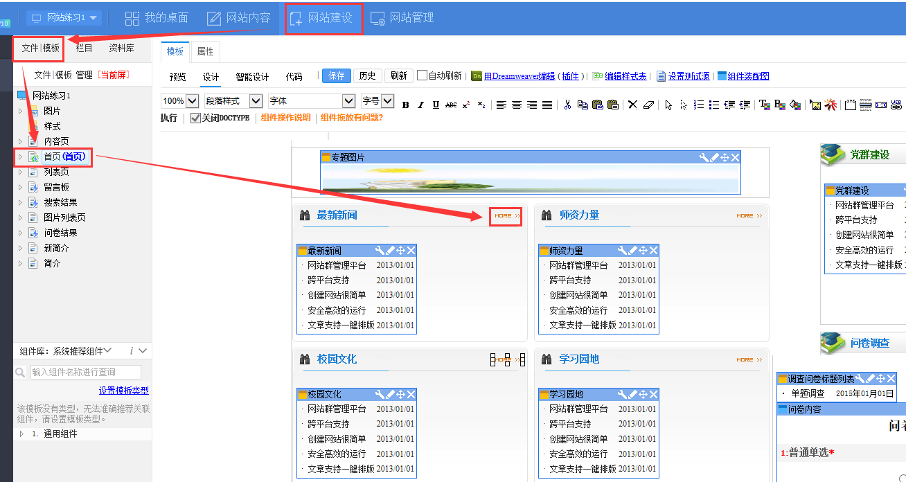 如何修改首页栏目对应的more链接?解决方案:1.登录网站管理-网站建设-首页模板-找到首页需要修改的栏目名称,