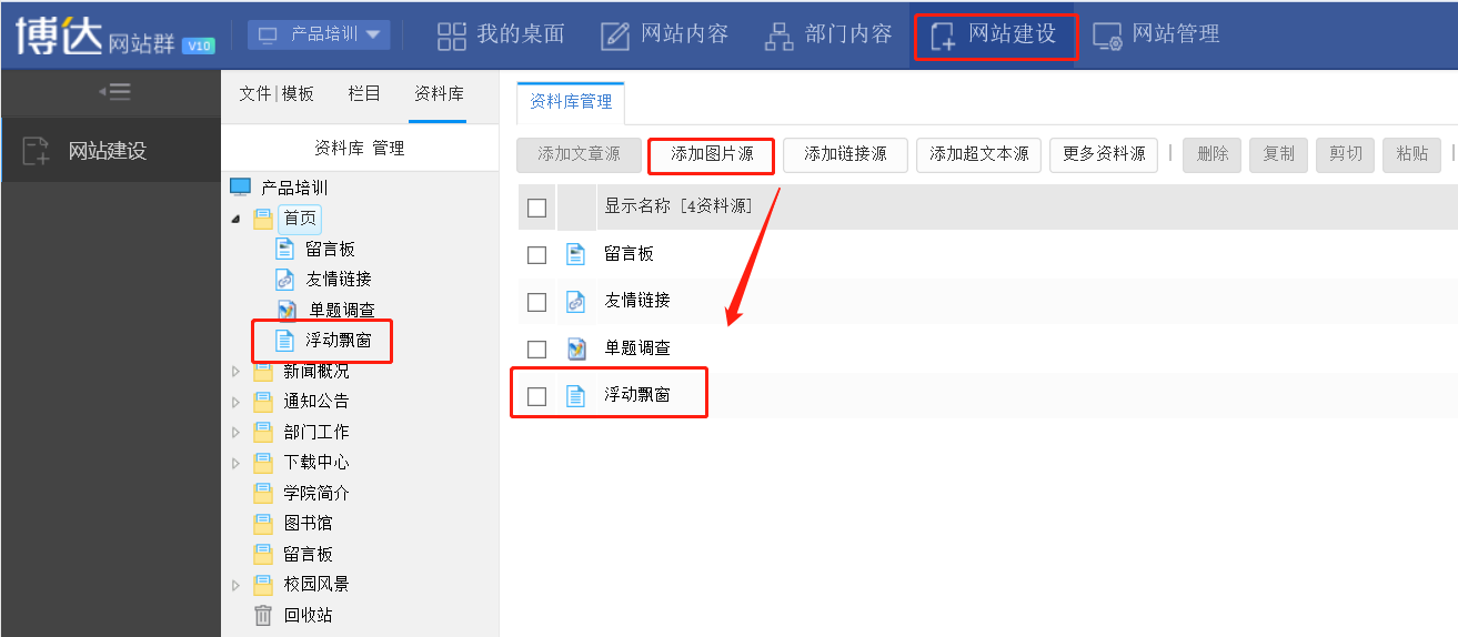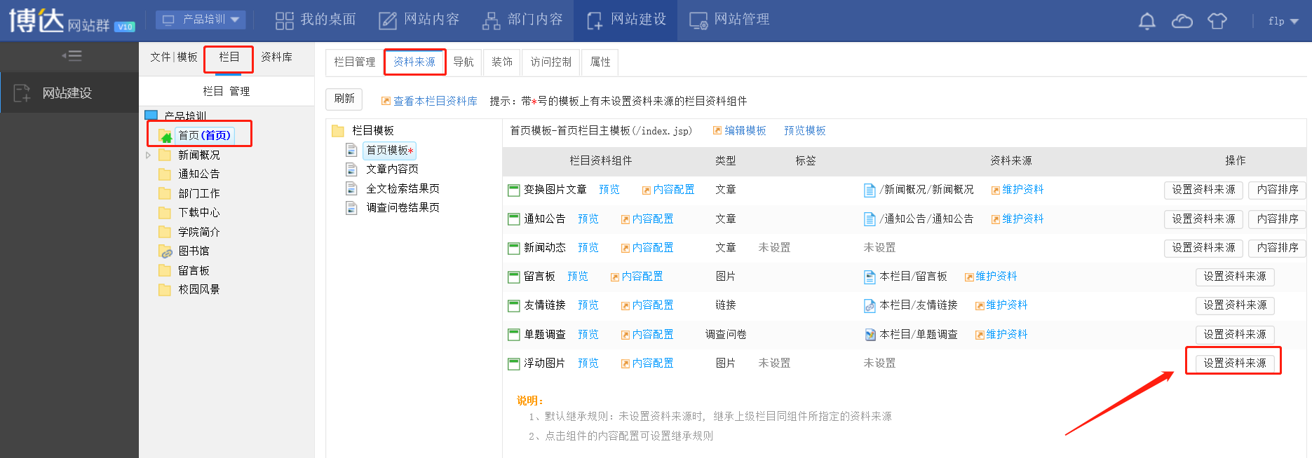 步骤三:在栏目管理中---首页---资料来源---设置对应的资料来源即可