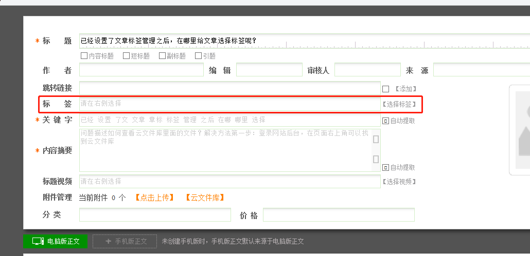 已经设置了文章标签管理之后,在哪里给文章选择标签呢?