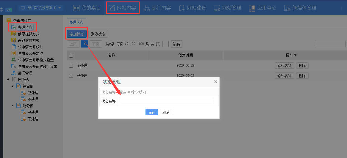政务全媒体版本中如何手动添加依申请公开的办理状态?