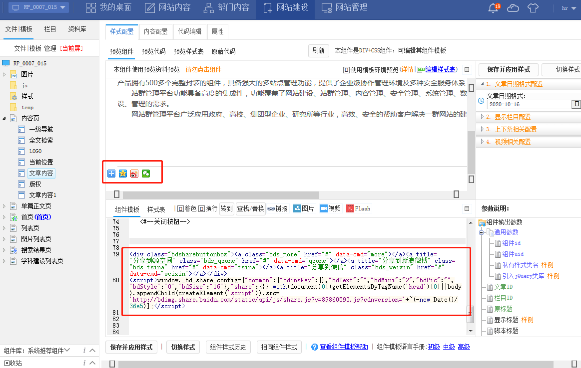 针对div网站组件,如何给文章内容页添加分享文章功能?