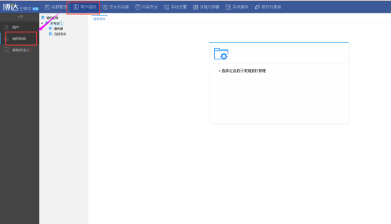 步骤一:点击用户组织-->用户,点击账号后面所属部门,选择部门,点击确定即可。如图1.4、1.5;