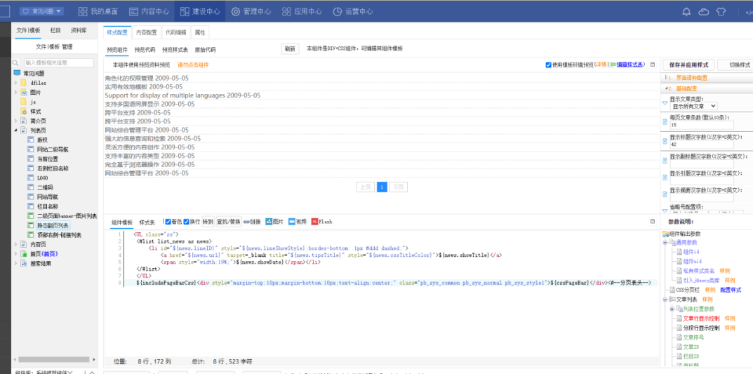 步骤一:登录网站后台—网站建设—文件/模板-列表页,找到静态翻页列表组件位置,如图1.1;