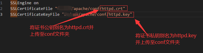 3.进入当前路径下extra文件夹中,打开httpd-ssl.conf文件,将内容情况后,插入以下内容: